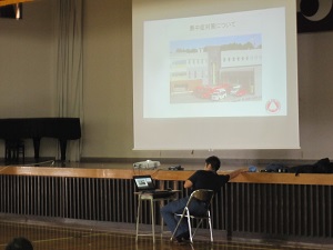 研修では、学校安全・安心推進課による『情報モラル研修』(スマートフォンの安全利用~被害者にも加害者にもならないために)と、天草広域連合南消防署による『防災教育』の2本立てで行われました。