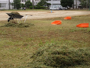 7時開始という朝早くからの作業にも関わらず、育友会・教職員合わせて約60名の参加がありました。グラウンド等の除草作業を行いました。みなさまの作業のおかげできれいになりました。大変お世話になりました。