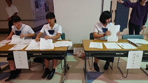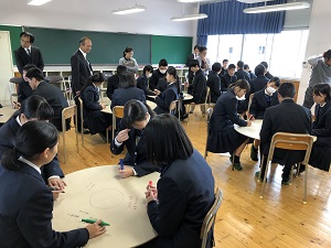 また公開授業には、13名の方々に来校いただきました。ご参観いただいた方からは「少人数授業で、学習能力の向上が図られていてよかった」、「落ち着いた環境の中で授業が進み、生徒が活発に意見する態度がよかった」などの感想をいただきました。その他いただいたご意見をこれからの授業作りに生かしていきます。