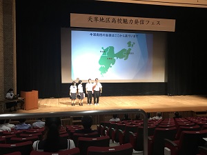 10月6日(日)、天草市民センターホール及び展示ホールで「天草地区高校魅力発信フェス」が行われ、生徒会執行部代表8名が参加しました。このイベントは、天草地区にある県立高校の特色ある教育や学校行事、進路、部活動などを天草地区の小・中学生、保護者、教職員および地域の皆様へPRをするものです。