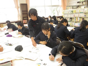 14日(木)には、授業力向上の取り組みの一環として、熊本県立済々黌高等学校 国語科スーパーティーチャーの益田先生をゲストティーチャーに迎え、2年次選択「現代文B(文理総合系列)」の公開授業が行われました。また、3年次選択「国語表現」の授業では本校教諭による研究授業、その後合評会を行いました。今後も、このようなサポート事業を活用しながら、授業の改善を進めていきます。
