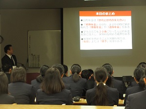 2月19日(水)2限目、3年次生を対象とした消費者教育講座があり、講師として熊本県金融広報委員会金融広報アドバイザーの橋野様にお越しいただきました。「消費者トラブルに遭わないために」と題して、契約の成立と取り消し、若者がターゲットとなる商法、ネットショッピングトラブル、多重債務問題など、事例を挙げながら分かりやすく話をしていただきました。将来トラブルに巻き込まれないように、うまい話は疑う、はっきりと断る、相談することが自分の身を守る手段であることを学ぶよい機会となりました。
