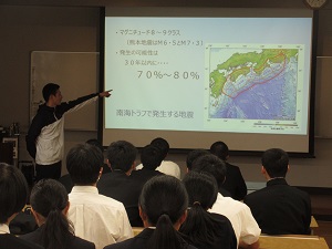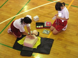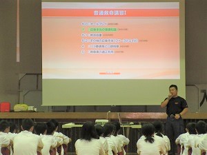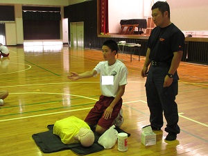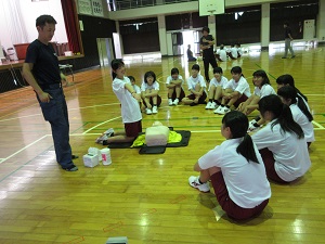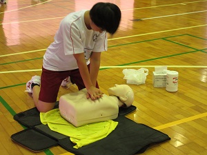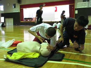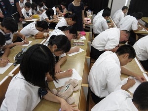 7月17日(水)、天草広域連合南消防署から4名の方にお越しいただき、1年次生を対象に救急救命訓練講習会を行いました。
