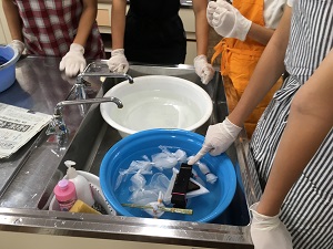 7月10日(水)、3年次 服飾手芸選択者を対象に「草木染め」実習を行いました。