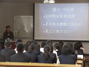 2月5日(水)、3年次生の登校日では、2つの講話がありました。