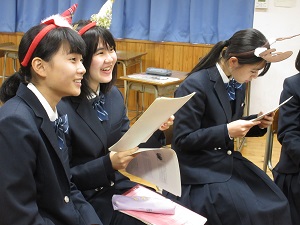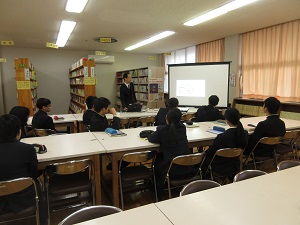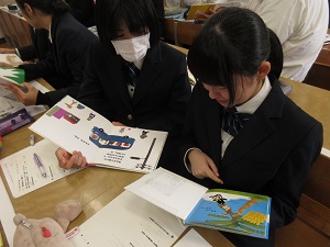1月25日(土)、天草市立牛深図書館で「ふゆのおはなし会」が行われました。2年次生は修学旅行のため、今回は、ありすボランティアに登録している3年次生2名が「はじまるよ」の手遊び歌、大型絵本「ねずみのでんしゃ」の読み聞かせ、手話のうた「にじ」を披露し、最後はみんなで恵方巻きを作りました。