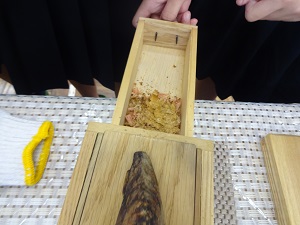 地元・天草から光永様(Meguri Island Colours代表)を講師に迎え、ハンカチの草木染めにチャレンジしました。染色の技法に関する知識や技術を学び、ハンカチの絞り方や折り方、染液につける時間や回数で色が変わり、自分の理想の染め方を模索しながら、世界に1つだけのオリジナルハンカチを作ることができました。