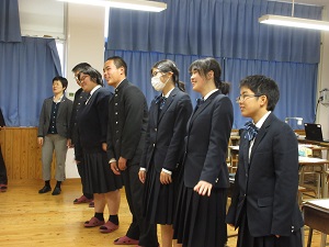 「期待や不安、喜び、ジェットコースターのような毎日だったが、1度も怖いと思ったことはなかった。それは、生徒のみなさんや先生方のおかげ。生徒の笑顔や誠実さが素敵なところ。ここで一緒に作った思い出を大切にしたい。これから、生徒のみなさんに最高の結果がもたらされるよう祈っています。」と退任のあいさつがありました。