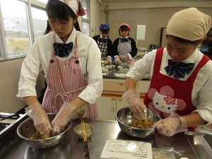 2月14日のバレンタインデーに合わせて、ブラウニーとトリュフの2品を作りました。家でもスイーツ作りに挑戦してみてください。13日(木)から行われる年度末考査も頑張りましょうにっこり