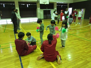 生徒たちは、子どもたちが喜びそうな出し物を準備し発表することで、子どもたちとすぐに仲良くなることができました。また、各クラスに別れて手遊び歌、ゲーム、外遊び、砂遊びなどをしたり、乳児クラスの子どもを抱っこしたりとそれぞれがふれあいを楽しむことができました。