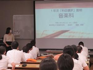 6月2日(水)1年次の「産業社会と人間」の時間で来年度からの科目選択についての説明会が行われました。6月1日、2日は各教科から授業の説明があり、来週は実際に授業を見学し、6月9日(水)に科目選択の仮調査を行う予定です。生徒たちは真剣な眼差しで先生方の説明を聞いていました。