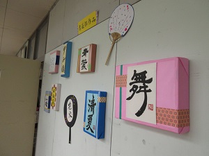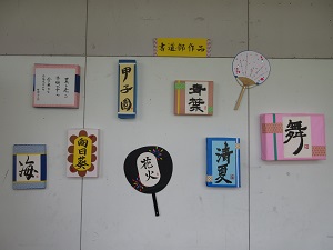 本校書道部4名の作品。上田さんの作品は、右から2番目(「秋風~」)です。