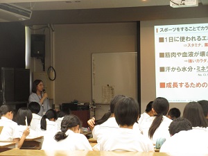 株式会社明治 西日本支社から管理栄養士・中村様を講師に迎え「スポーツ栄養講座 勝つためのカラダをつくろう!」と題し、ご講演いただきました。