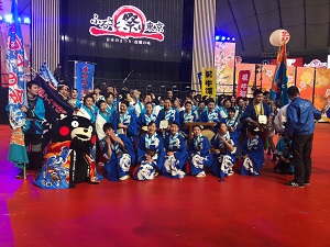 1月13日(日)・14(月・祝)の2日間、天草市役所牛深ハイヤチーム、東京牛深ハイヤの会、そしてくまモンと、大人数で牛深ハイヤを披露しました。全国各地の祭りを紹介する大きなイベントで楽しく、最後は、会場内のお客さんと一緒に道中踊りを楽しみました。天草市役所牛深ハイヤチーム、東京牛深ハイヤの会のみなさま、ありがとうございました。