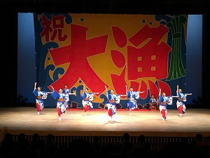 12月24日には、牛深総合センターで天草市役所牛深ハイヤチームのみなさまと合同練習を行いました。約40人で踊る舞台は圧巻です。