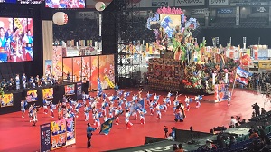 1月13日(日)・14(月・祝)の2日間、天草市役所牛深ハイヤチーム、東京牛深ハイヤの会、そしてくまモンと、大人数で牛深ハイヤを披露しました。全国各地の祭りを紹介する大きなイベントで楽しく、最後は、会場内のお客さんと一緒に道中踊りを楽しみました。天草市役所牛深ハイヤチーム、東京牛深ハイヤの会のみなさま、ありがとうございました。