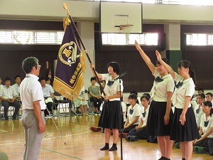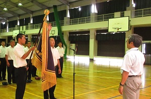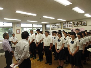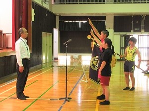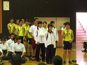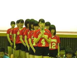 部長の庵本詩さんが「大切に使わせていただきます。今後もさらに練習を頑張っていきます。」と御礼のあいさつを述べました。今後も技術面だけでなく人間力向上に努めていきます。