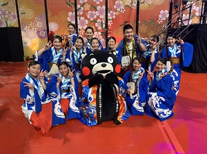 1月12日(日)には、ふるさとステージ、お祭り広場で合わせて3回、「牛深ハイヤ節」を披露しました。お祭り広場では、天草市役所牛深ハイヤチーム、東京牛深ハイヤの会、くまモンも一緒にステージに立ち、大人数でステージを披露することができました。東京ドームという大きな会場で披露するという貴重な経験をこれからの活動に活かしていきます。天草市役所牛深ハイヤチーム、東京牛深ハイヤの会のみなさま、また当日ご観覧いただきましたみなさま、大変ありがとうございました。