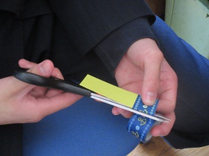 ↓ お話を聞きながら歴史資料をみんなで読んでいます。