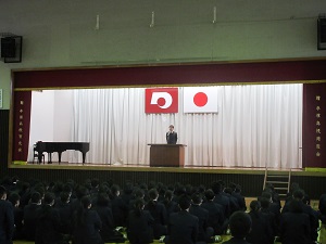 生きていく中で、常に前だけを見続けるのは難しいことです。時には右や左を見たり、立ち止まったり、たまには後ろに下がったりしながら何か目標を持ってまずは高校3年間、そして今後の人生を歩んでいってほしいと思います。楽しさは他人に求めるものではなく、自分で求めにいくもの。3学期、まずは、小さなことでもいいので目標を立て、それぞれ来年度に向けての良い準備をしましょう!!