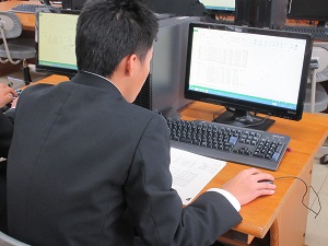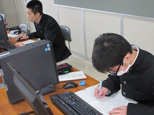 2年次、3年生の情報処理選択者、パソコン部の生徒が受験します。