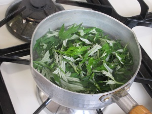よもぎの葉を摘み団子を作り、あんこを添えて『草もちのからみだんご』の完成。お好みできな粉も添えて、春の味覚を味わいました。