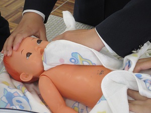 5月16日(火)、3年次 選択 子どもの発達と保育では、沐浴実習が行われました。