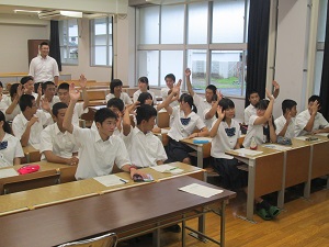 2月26日(月)、1・2年次生を対象に地歴公民科出前授業が行われました。今回は、牛深の特産である「雑節」の学習を通し、郷土の地理・歴史を知るとともに、地域産業活性化の視点を学ぶことを目的として実施しました。