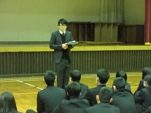 猪股さんが、「集団行動の中で周囲に気遣いができるとともに、系列別学習などで進路についても考える機会にしたい。また修学旅行に行けることに感謝したい。」と述べました。