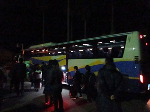7時半 途中のトイレ休憩を終えました。順調に熊本空港に向かっています。みんな元気です。