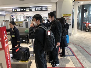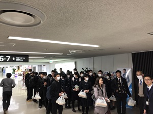 朝早くからの出発で、バスと飛行機で東京に行きました。自分は飛行機に乗るのが初めてだったのでいい経験になりました。