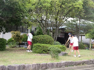 4月24日(月)、校内清掃のボランティアを行い、草や落ち葉集めなどを行いました。
