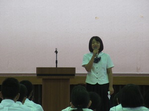 文化委員会からは、10月26日(土)に行われる文化祭テーマの発表がありました。今年度の文化祭テーマは「青春~That will never end~」となりました。青春は永遠に終わらないという意味です。私たちの青春を保護者のみなさんや観客のみなさんに見ていただき牛深高校生の元気やパワーを感じていただきたいです。