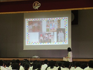 先生は、「当たり前の平和な日常は、誰かに支えられている。だから、そのことに感謝して過ごしてほしい」と話されました。私は、生まれた時から平和に生活できていて、これが当たり前になっていました。先生の講話を聞いて、これからは自分の平和な日常を支えているのは誰なのか、しっかり考えて感謝して毎日を過ごしていきたいと思います。