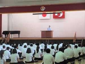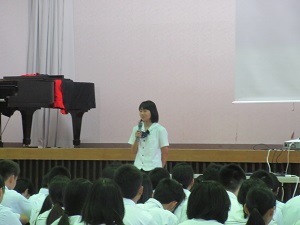 9月4日(月)に行われた9月の全校朝礼では、佐藤先生が講話をしてくださいました。思春期の私たちにとって、とても心に残る話でした。