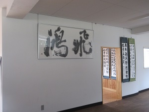 その後、校長先生から「飛鴻(ひこう)」の書の紹介がありました。有明町在住の書道家である河内東壁先生の作品です。鴻は、大きな水鳥という意味で、校長先生はこの書にちなみ「牛高生が牛深の地から大きな水鳥のように羽ばたいてほしい」という話をされました。この看板は、生徒玄関に飾ってあります。ぜひ、見に来てください!!