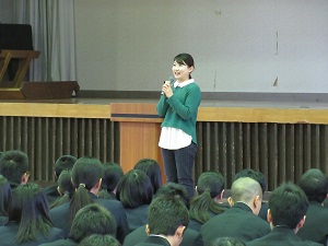 先生は、ある失敗についてお話ししてくださいました。先生は、高3の1月、ちょうど今の時期に進路変更をされたそうです。過去の選択の失敗の中でもあきらめずに自分の目標に向かって努力したことで、今があるとお話されました。私は、講話を聞いて「失敗は成功のもと」という言葉が思い浮かびました。先生が教えてくださった「あきらめないこと、先生方のアドバイスをしっかり聞くこと、知識や視野を幅広く持つこと」、この3つのポイントが大切だということが分かりました。