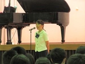 今月から校歌のピアノ伴奏が1年次・岡田さんにバトンタッチしました。毎月大きな声で校歌を歌っていきましょう。最後に、生徒会から文化祭についての趣旨説明がありました。文化祭当日まで各団体で協力して進めていきましょう。