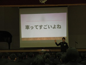 1月全校朝礼「車ってすごいよね」〈投稿者:図書委員長〉