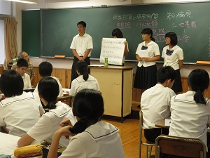 地方自治、選挙制度の授業の一環として行っており、牛深高校や牛深の課題について考え、解決策を熱弁していました。