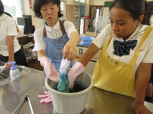 ③ゲストティーチャーに化学の廣瀨先生が登場。発色剤について教えていただきました。