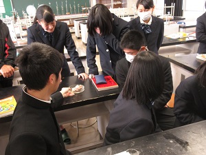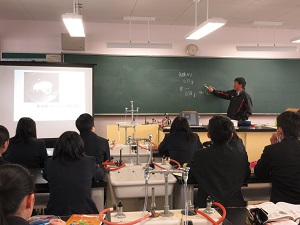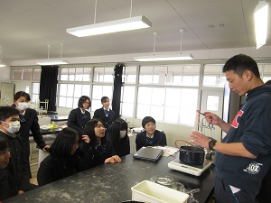 ③ゲストティーチャーに化学の廣瀨先生が登場。発色剤について教えていただきました。