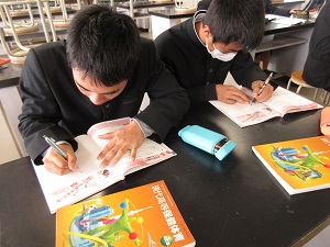 3年次 選択 書道Ⅲの授業では、お世話になった先生へ感謝の気持ちを込めて、書を贈りました。