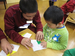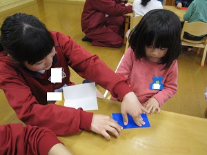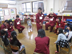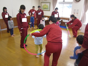 これは、家庭基礎【保育分野】の学習の一環として取り組んでいるもので、さまざまな遊びを通して園児とふれあいました。