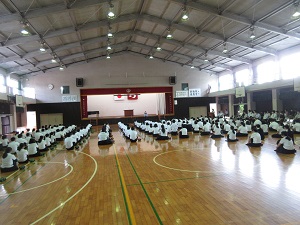 6月2日(火)、6月の全校朝礼が行われました。今月は、生徒会からのお知らせ、校長先生をはじめ各方面の先生方からの講話がありました。