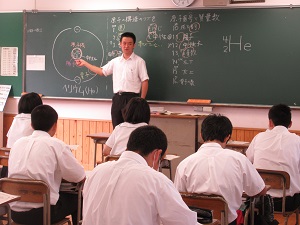 2週間で生徒たちとも打ち解けています。6月20日(木)には、実習の締めくくりとして科学と人間生活「物質の科学ー原子の構造」の研究授業を行いました。これからの活躍が楽しみです。