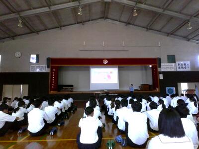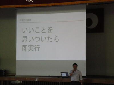また、来年度創立10周年の節目を迎える牛深高校の目指していく姿を生徒たちに伝えられました。ウォルトディズニーが「ディズニーランドはまだ未完成である」という言葉を遺したことを例に、牛深高校も未完成であり、これからますます進化し続けましょうというお話がありました。
