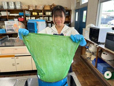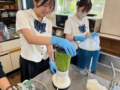 6月5日(水)「服飾手芸」の授業で藍の生葉染めを行いました。