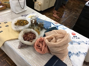 地元・天草から光永様(Meguri Island Colours代表)を講師に迎え、ハンカチの草木染めにチャレンジしました。染色の技法に関する知識や技術を学び、ハンカチの絞り方や折り方、染液につける時間や回数で色が変わり、自分の理想の染め方を模索しながら、世界に1つだけのオリジナルハンカチを作ることができました。