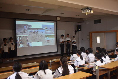 クラスマッチの前に全校生徒で海岸の清掃活動をしました。流れ着いたゴミは思ってた以上に多く、地元の海を大切にしたいと改めて思う機会になりました。